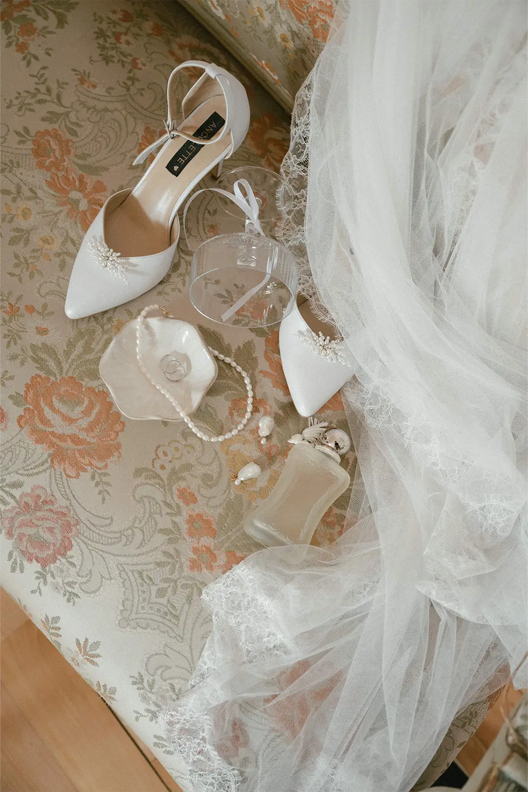 The dress, accessories, and groom’s suit were all photographed with care, in a clean and elegant style specific to an editorial wedding photographer.