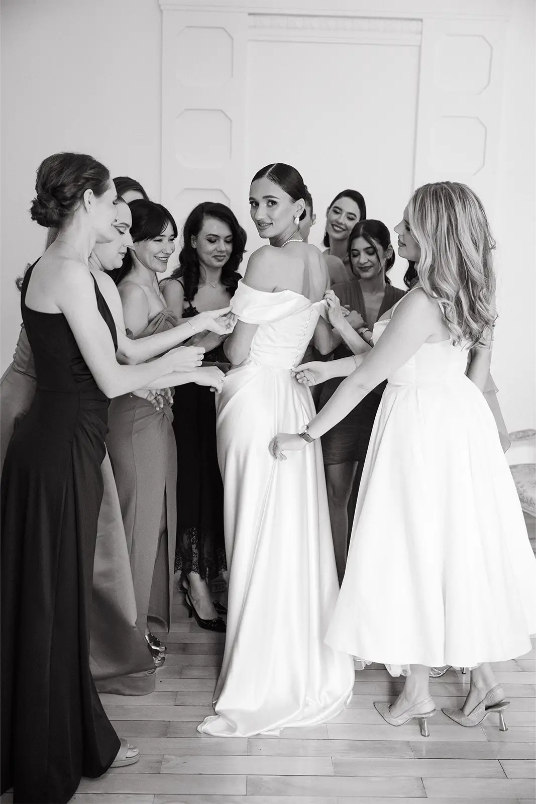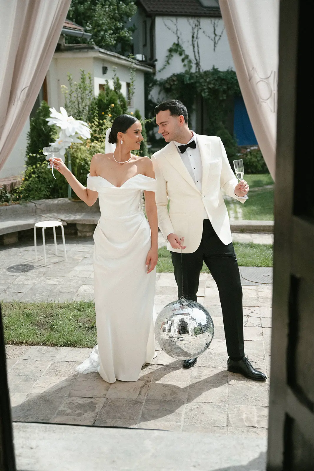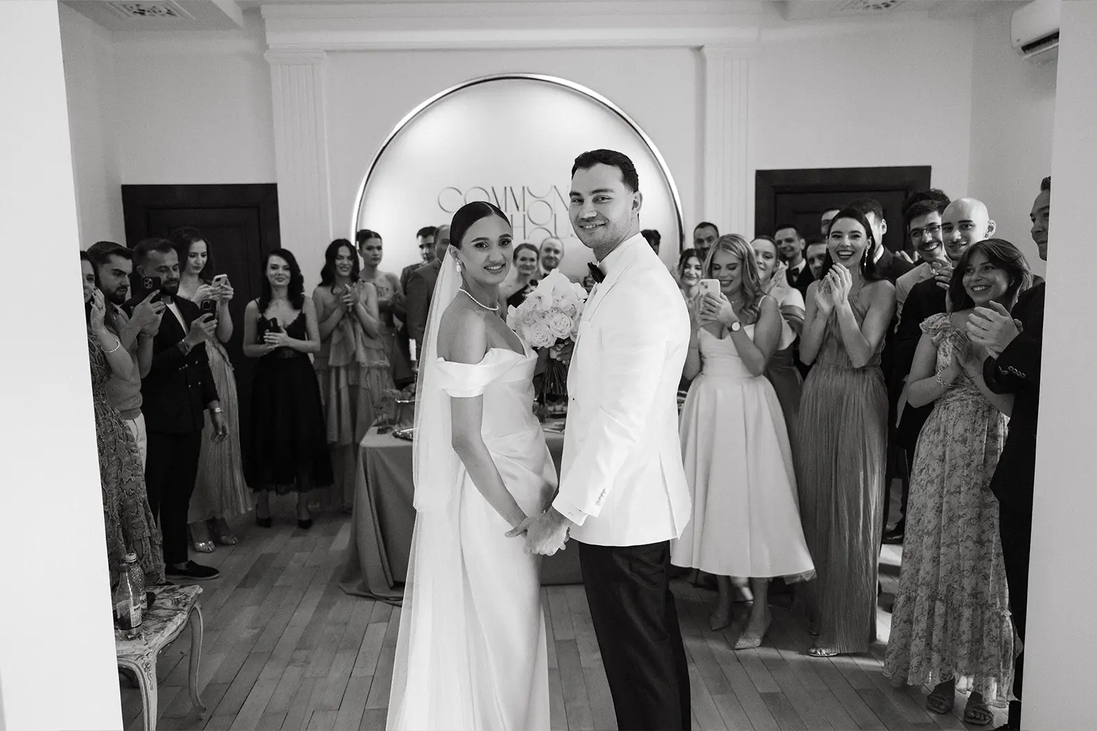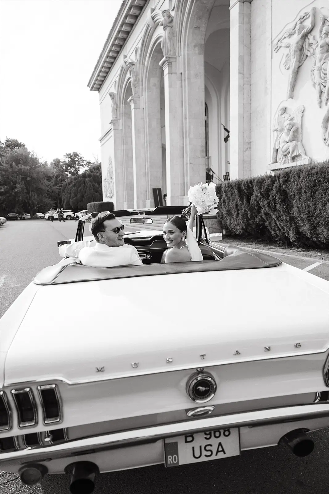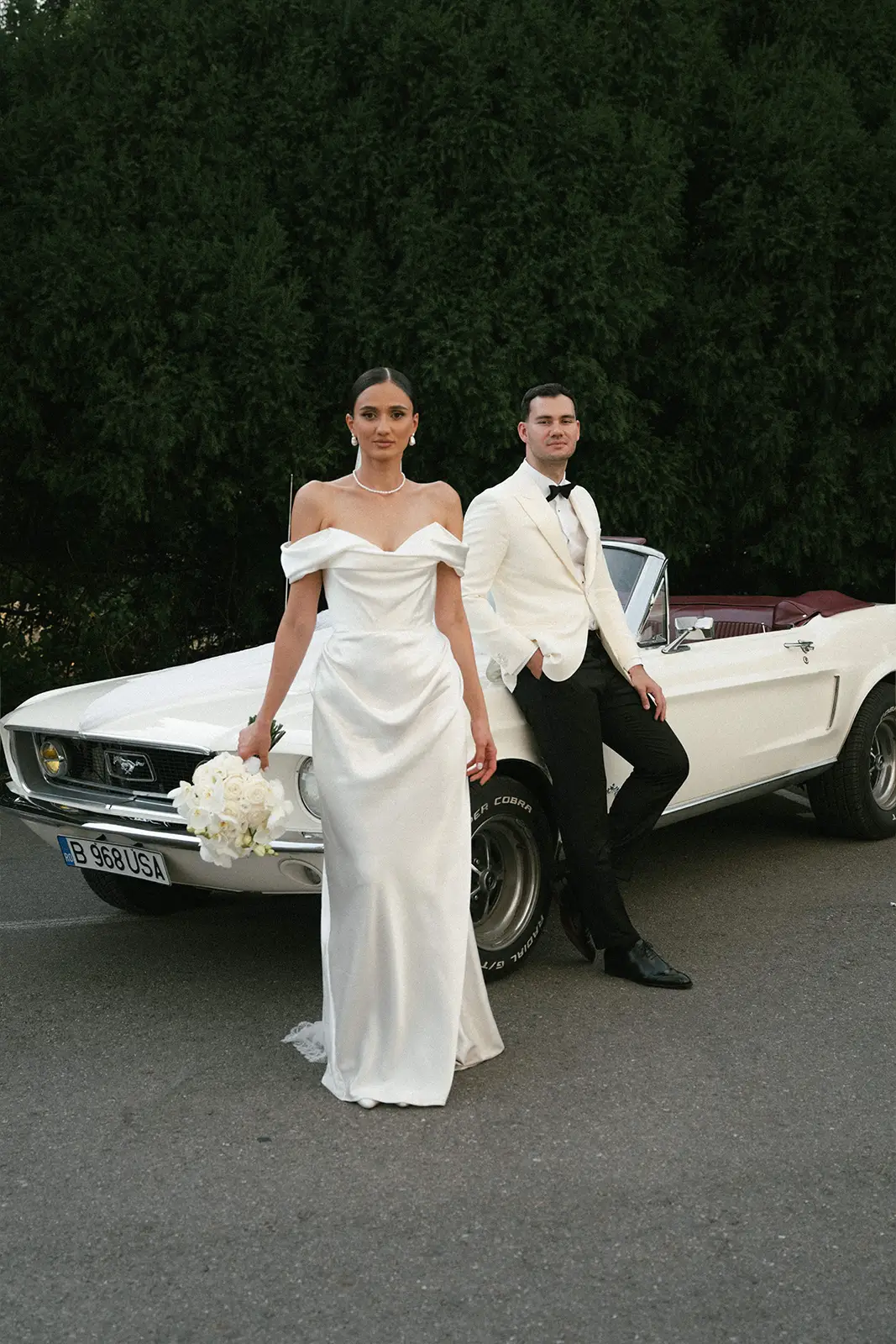 This wedding in Bucharest was a perfect balance between emotion and aesthetics. From the preparations at Commun House to the religious ceremony, the vintage car photo session, and the reception at Bokaa, everything was built around a clear and refined style.