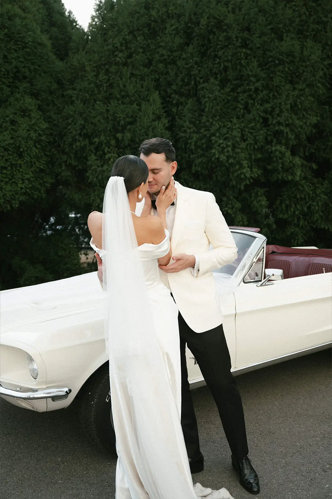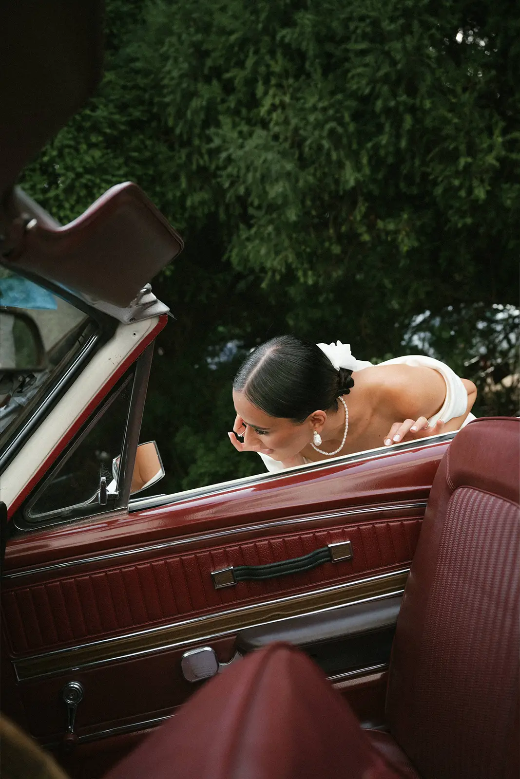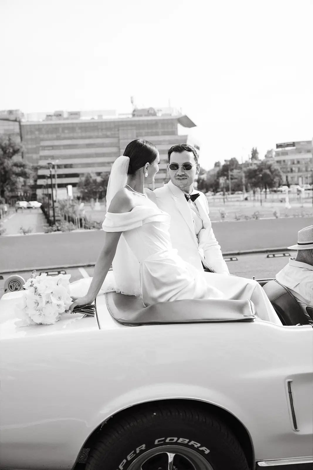 One of the most memorable moments of the day was the photo session with a vintage car. This type of element not only enhances the visual aesthetic but also helps define a clear identity for the wedding.