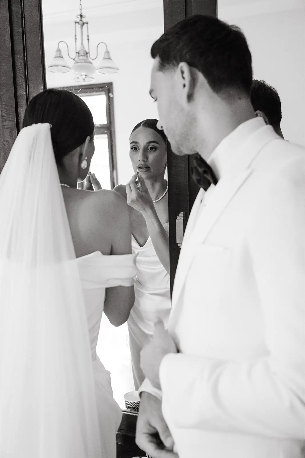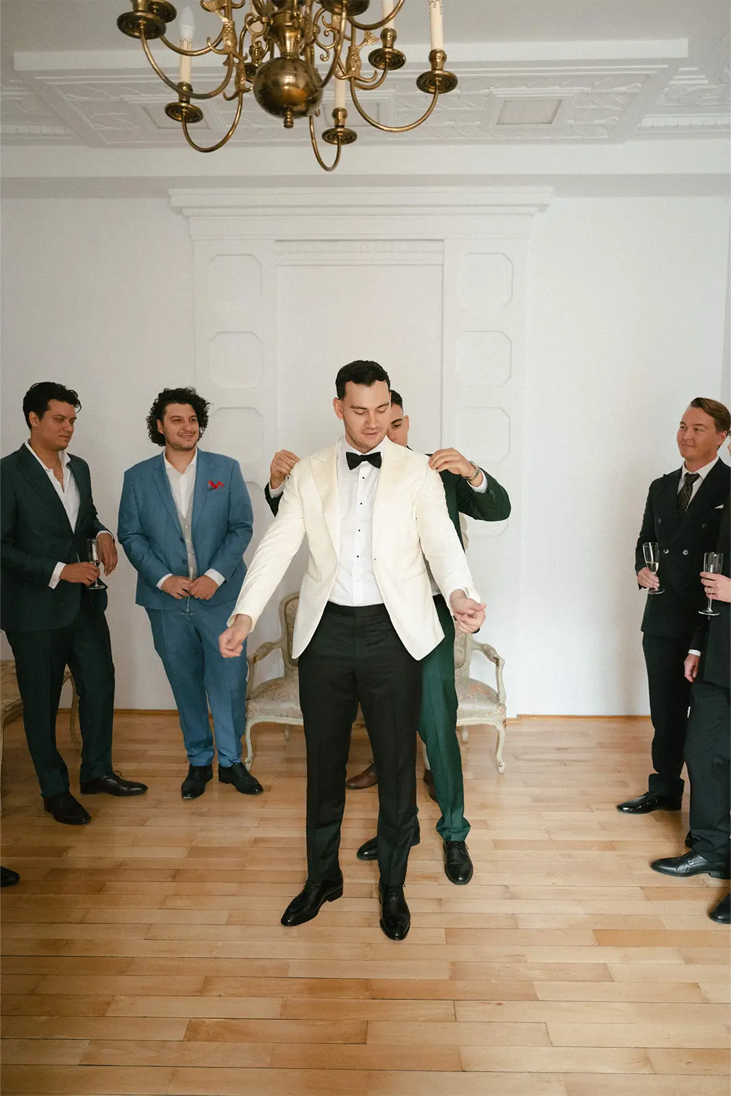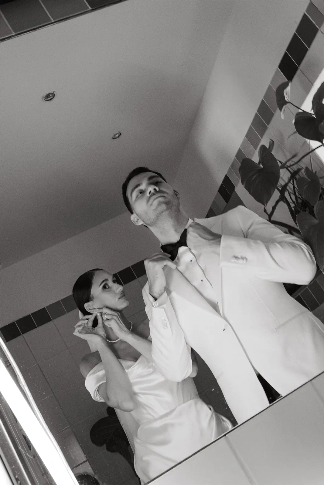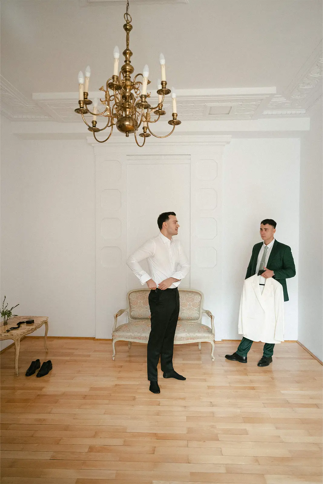 The day started in a modern, light-filled setting at Commun House, a space ideal for preparations thanks to its minimalist design and generous natural light. Both the bride and groom chose an airy environment where every detail could truly stand out.